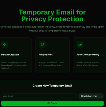 StuxenoMail is a fast, lightweight temporary email service designed for privacy, convenience, and speed. It allows users to instantly generate disposable email addresses and receive emails without registration, personal data, or inbox clutter.